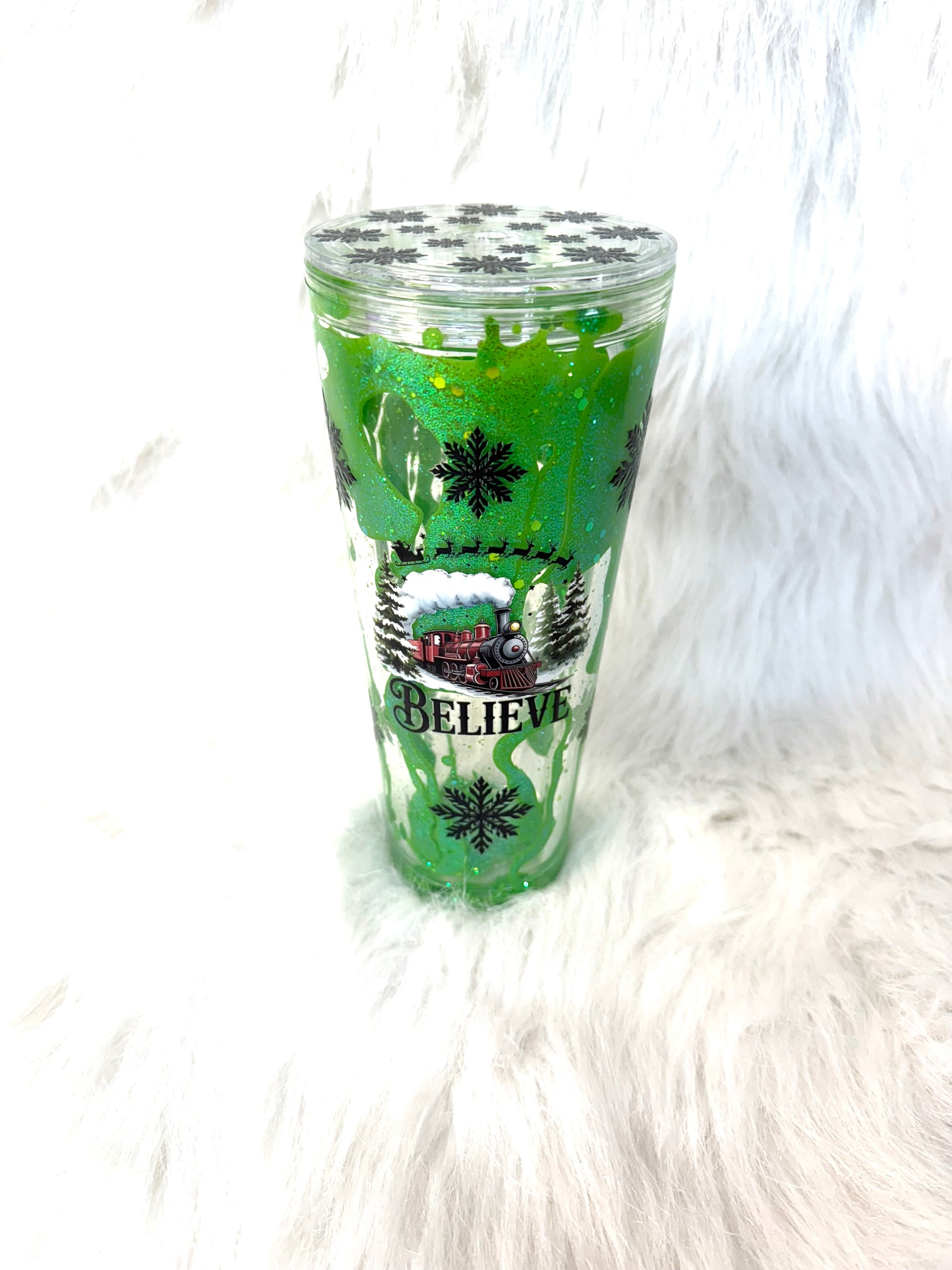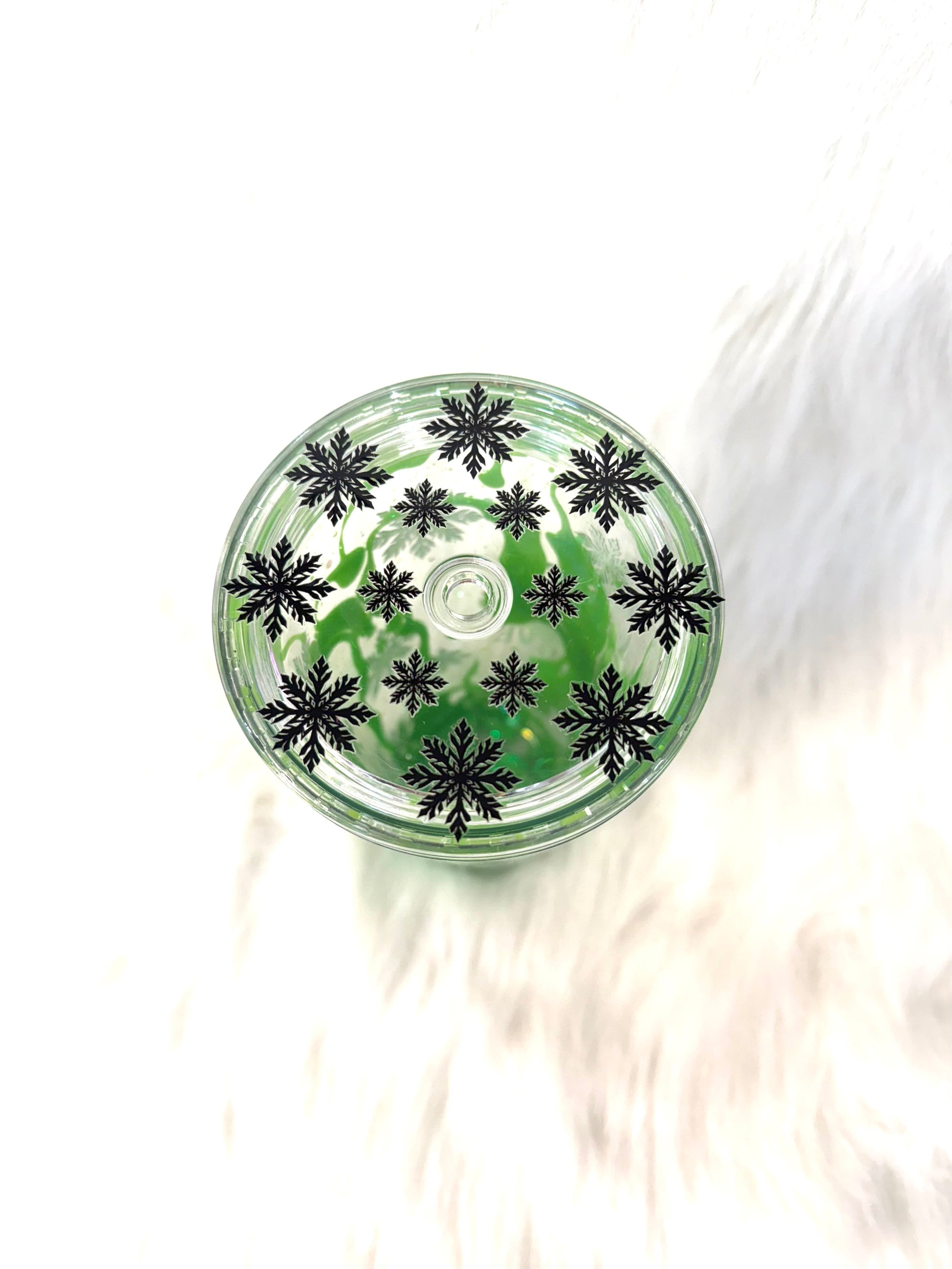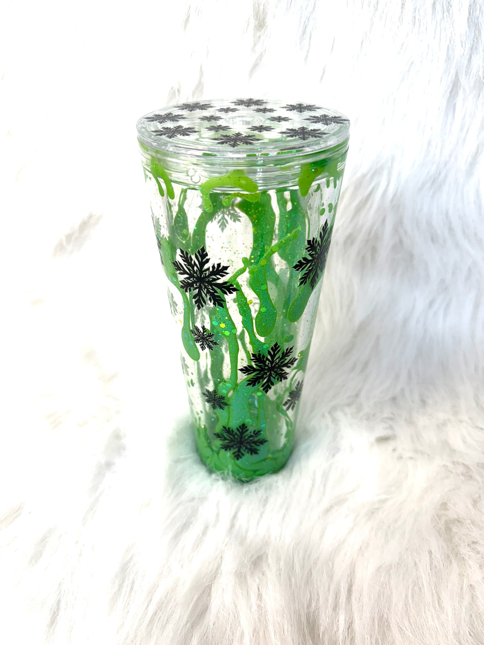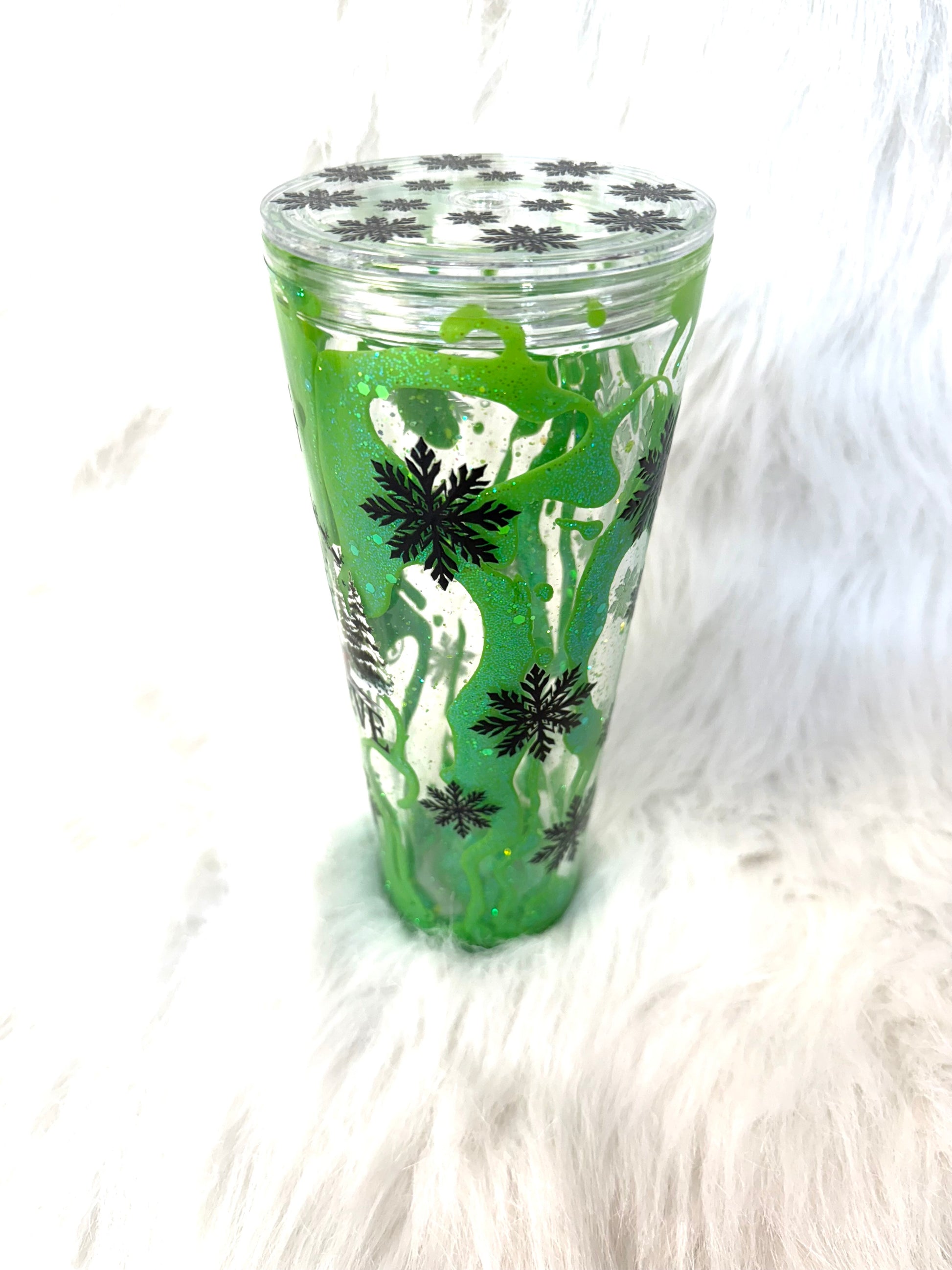 Glow in the dark lava drip in a 24 oz acrylic snow globe tumbler