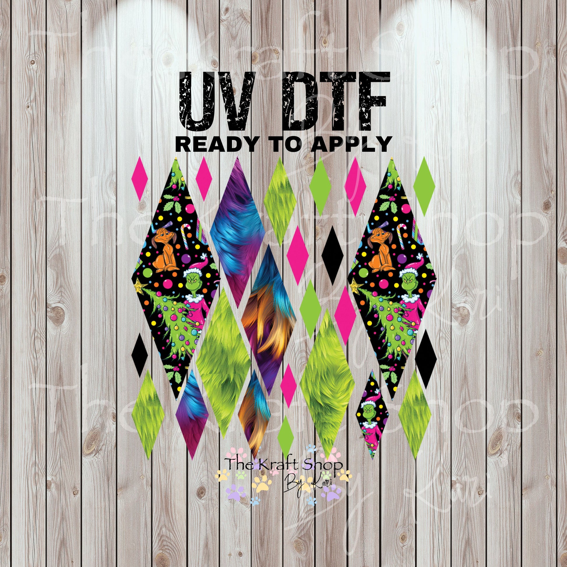 UV DTF Ready to apply transfers are available in a 10x10 sheet of various sized images. They can be used on any hard surface. The transfers are made in house so please reach out for any custom sizes or images.