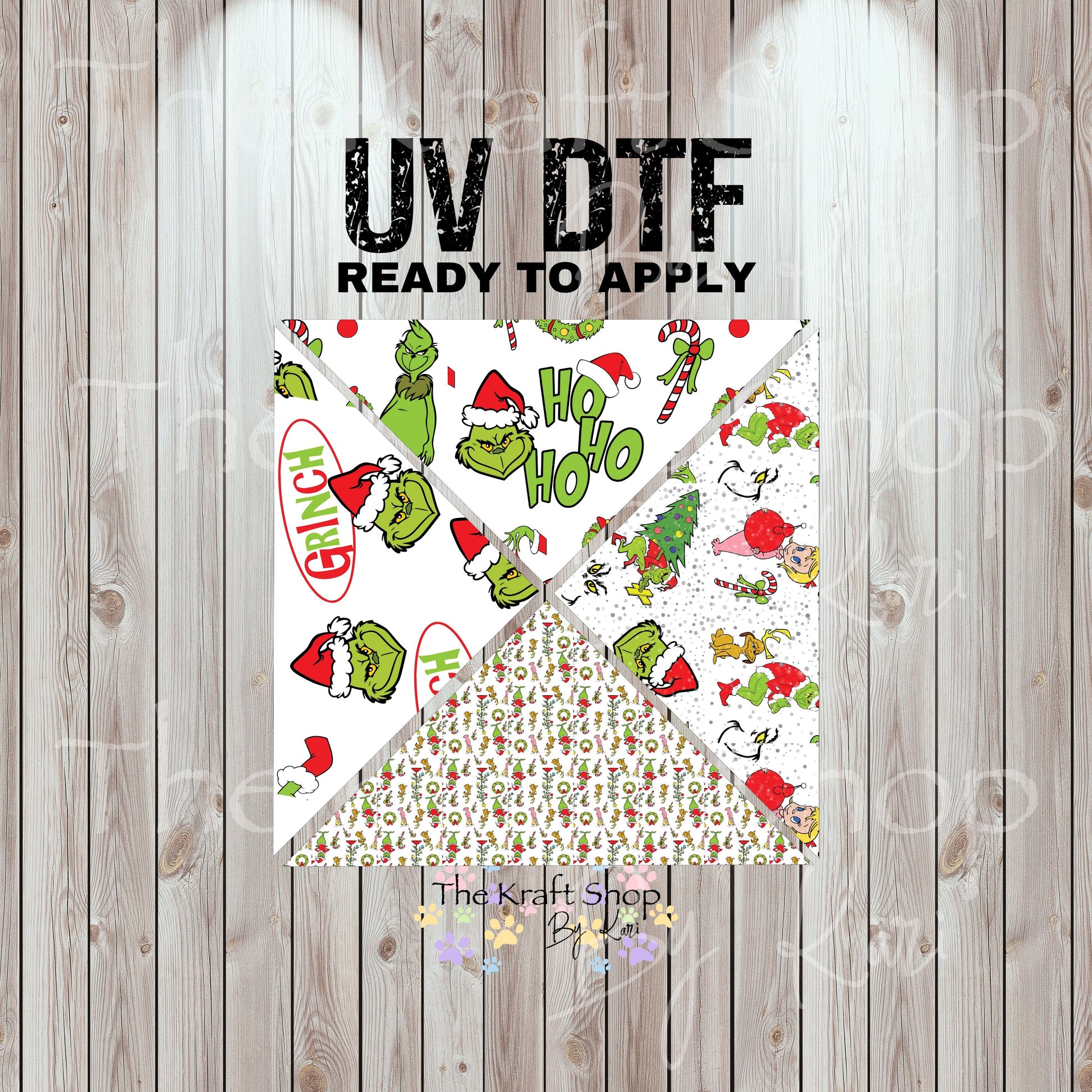 UV DTF Sticker print. Grin Christmas 4 triangle V Split Helper tumbler wrap decal, tumbler decal. UV wrap for tumbler.