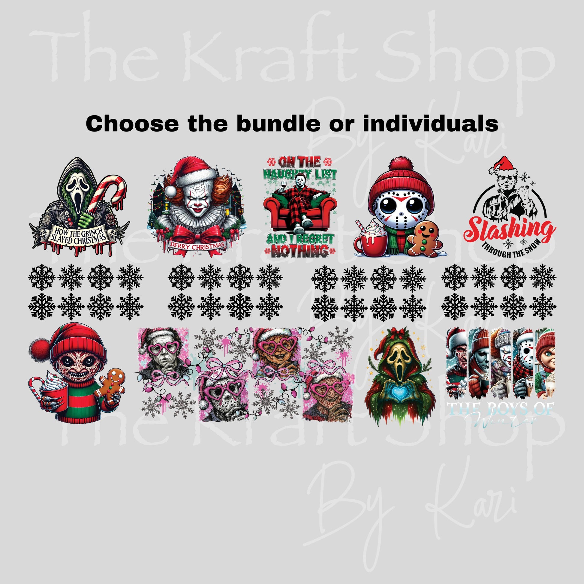 UV DTF Sticker print. Horror Christmas 23x12 Mini Gang sheet Sassy decal bundle decal, tumbler decal, permanent sticker. UV wrap for glass can tumbler. #7485