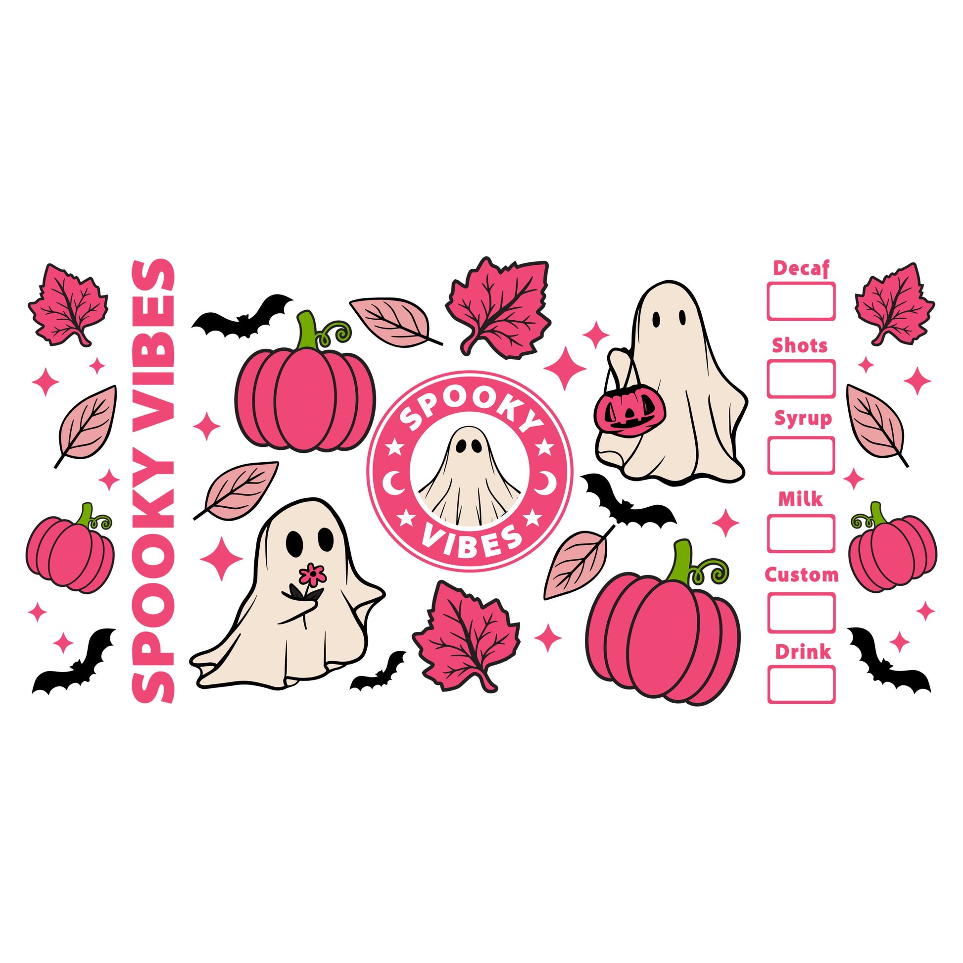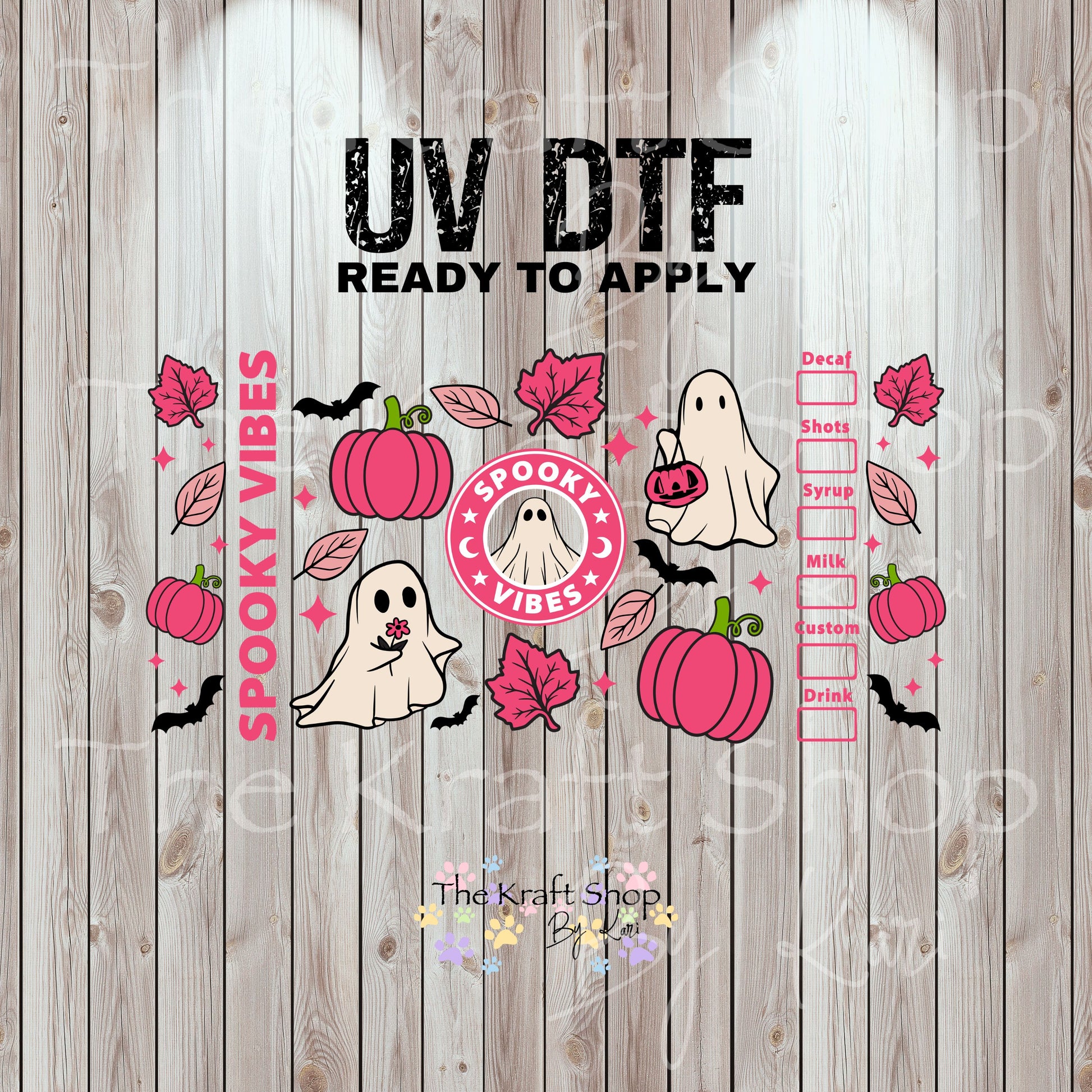 UV DTF Sticker print. Pink spooky vibes star ghost glass can wrap decal, tumbler decal, permanent sticker. #7341