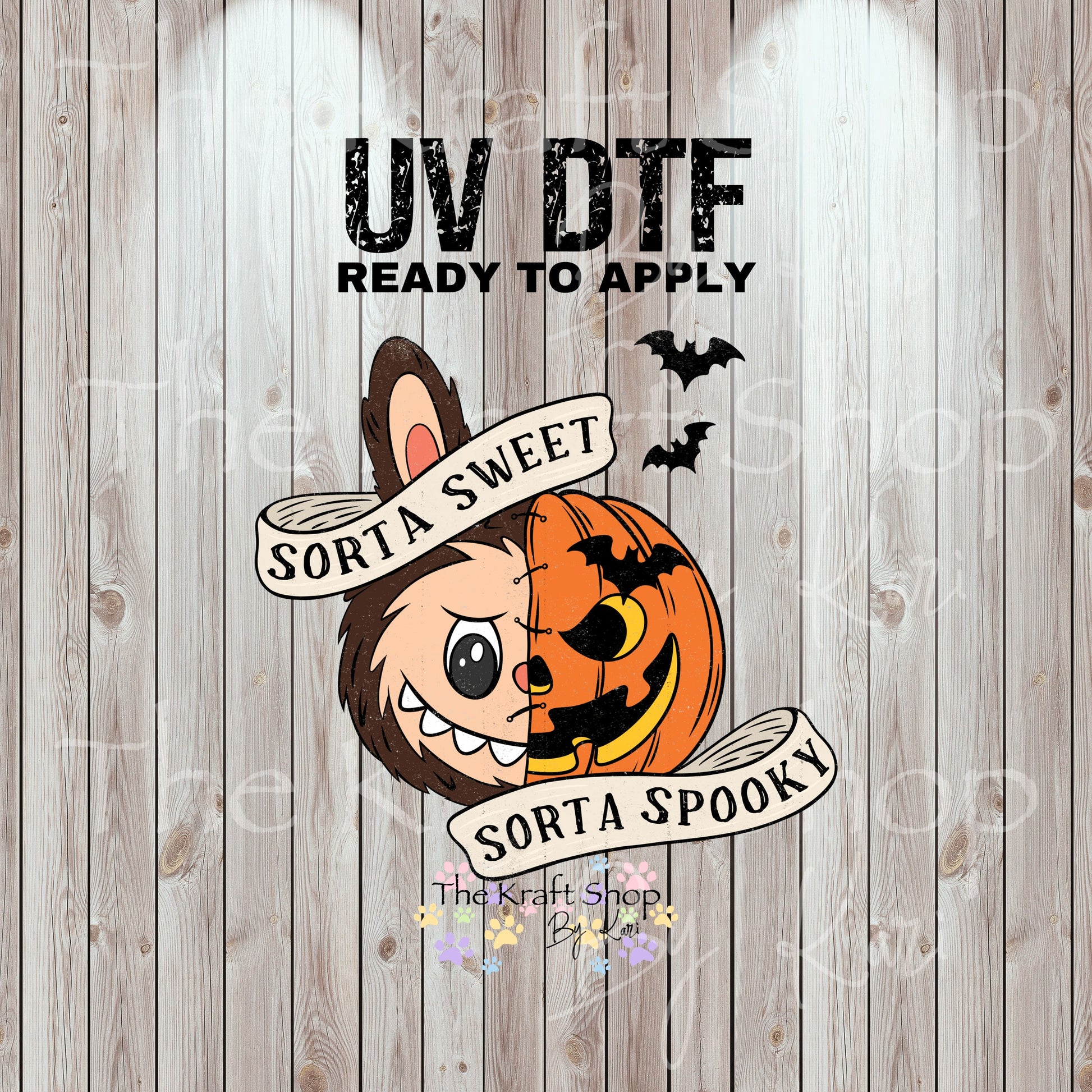 UV DTF Sticker print. Sorta Sweet Sorta Spooky tumbler decal. Glass can wrap. #7426