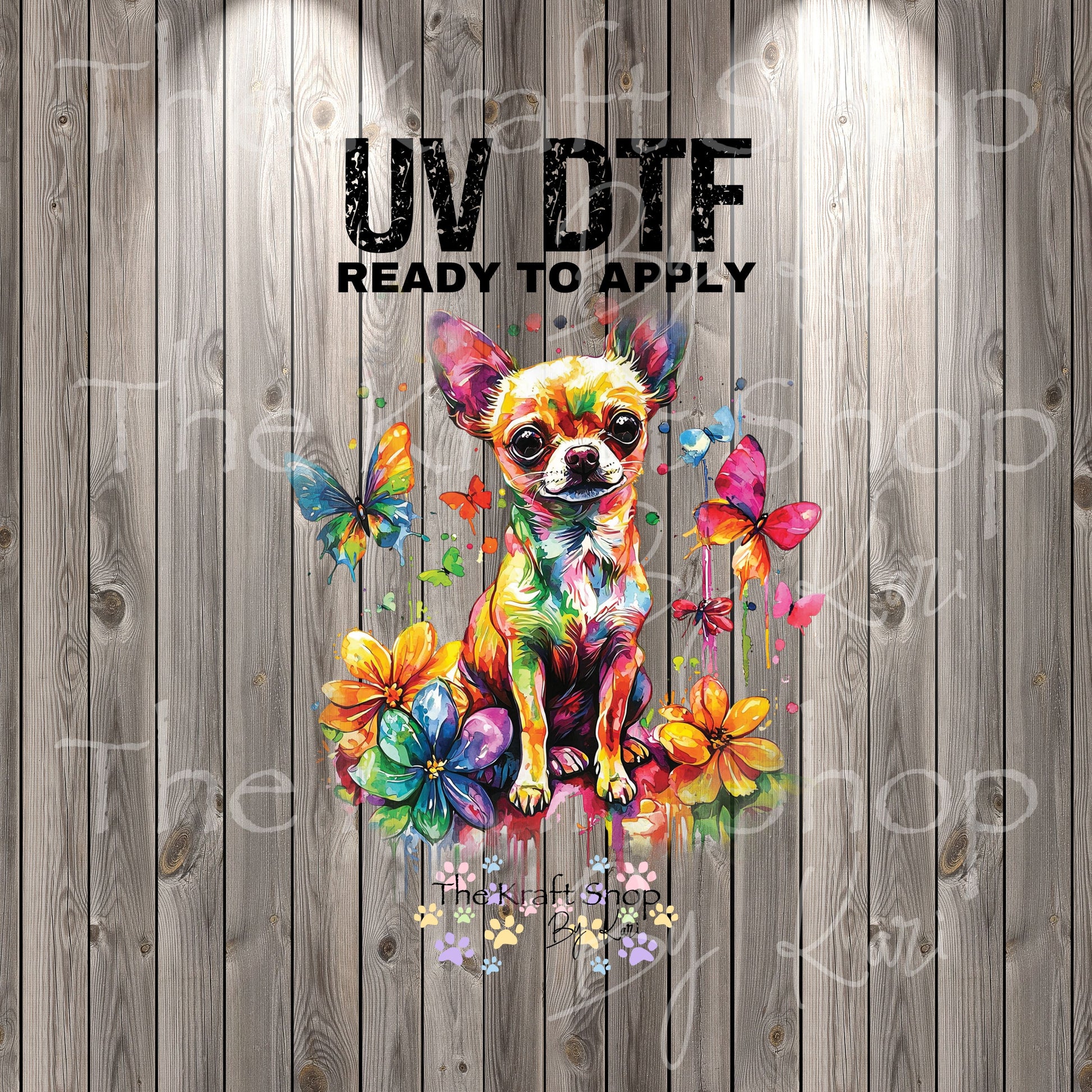 UV DTF Sticker print Watercolor Chihuahua decal, tumbler decal, permanent sticker. Uv wrap for glass can tumbler. #10320